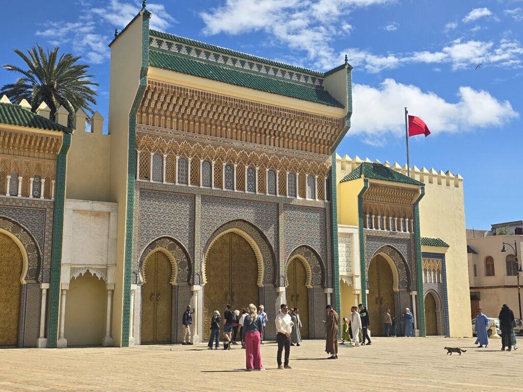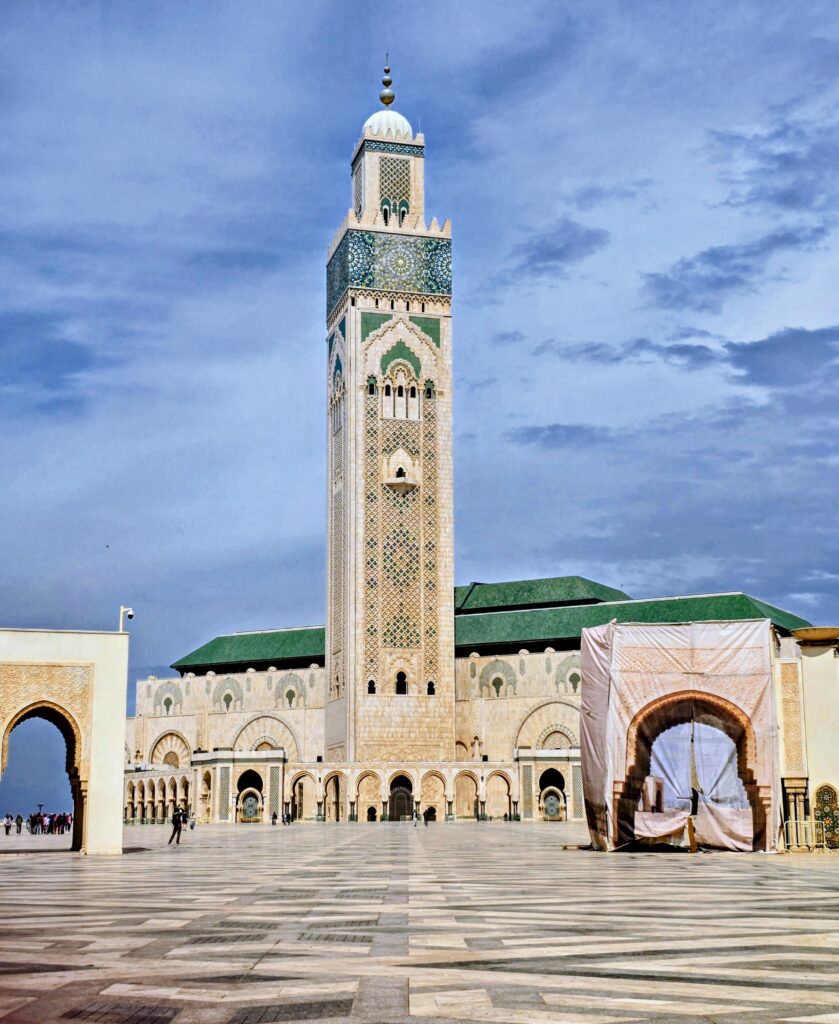 Our driver, Soufiane, introduced himself and we were off on a brief vehicle tour of Casablanca with three stops: the luminous modernist Catholic church of Notre Dame de Lourdes, famed for its sweeping stained-glass walls; the grand Place Mohammed V, Casablanca’s central square framed by French colonial architecture and a busy fountain; and finally the showstopper, the Hassan II Mosque—one of the largest mosques in the world, its 210-meter minaret towering over the Atlantic, its prayer hall able to hold 25,000 worshippers (with space for tens of thousands more outside), and every surface dressed in intricate zellij tilework, marble, and carved cedar that left us in awe on our very first day. Casablanca serves as the major economic hub for Morocco but it was not a planned overnight stop and after glimpsing Rick’s Cafe briefly, we began our road trip to Fez.