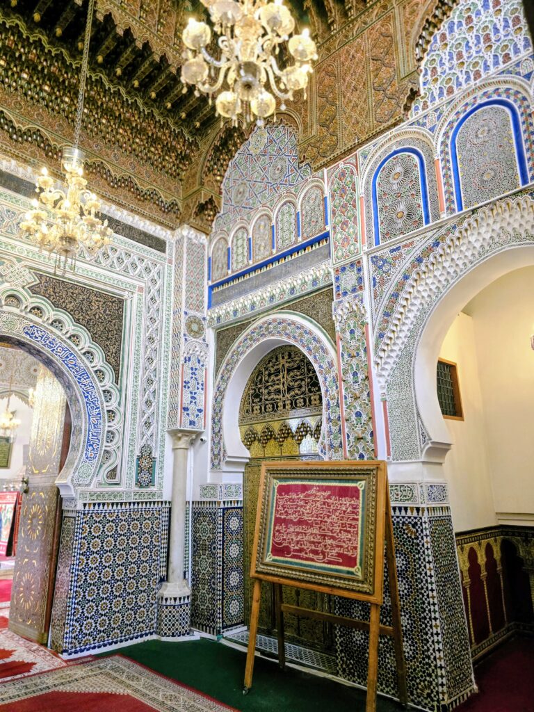 From there, we continued through the medina toward one of its most storied landmarks: the University of al‑Qarawiyyin. Founded in the 9th century by Fatima al‑Fihri, it’s often cited as the world’s oldest continuously operating university. During Ramadan, the atmosphere around it was especially subdued; we didn’t linger or witness much activity inside, but even from the outside you sense the weight of its history—green‑tiled roofs just visible above the alleys, a carved doorway that has watched over more than a thousand years of students and scholars passing through.