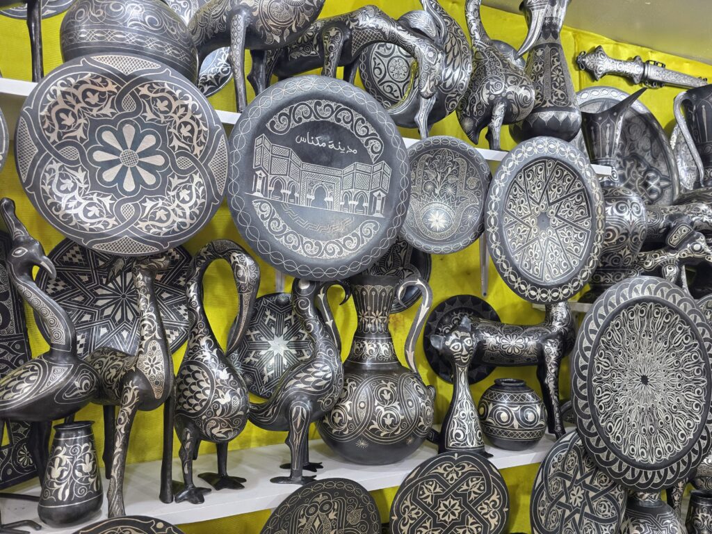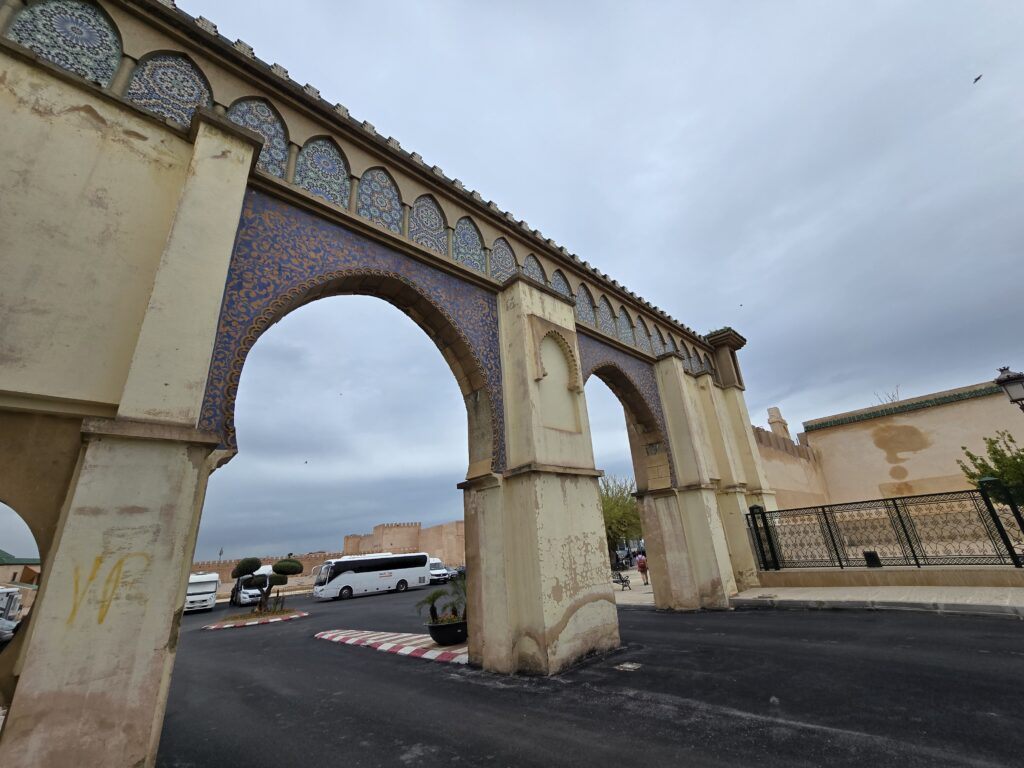 In Meknes, we were met by a local guide who began our walking tour at the city’s most famous gate to the medina. Standing beneath its massive arch, he explained how the gates of Meknes weren’t just entrances, but statements of power and protection—each one with its own proportions, inscriptions, and decorative details that hinted at the history behind the walls.