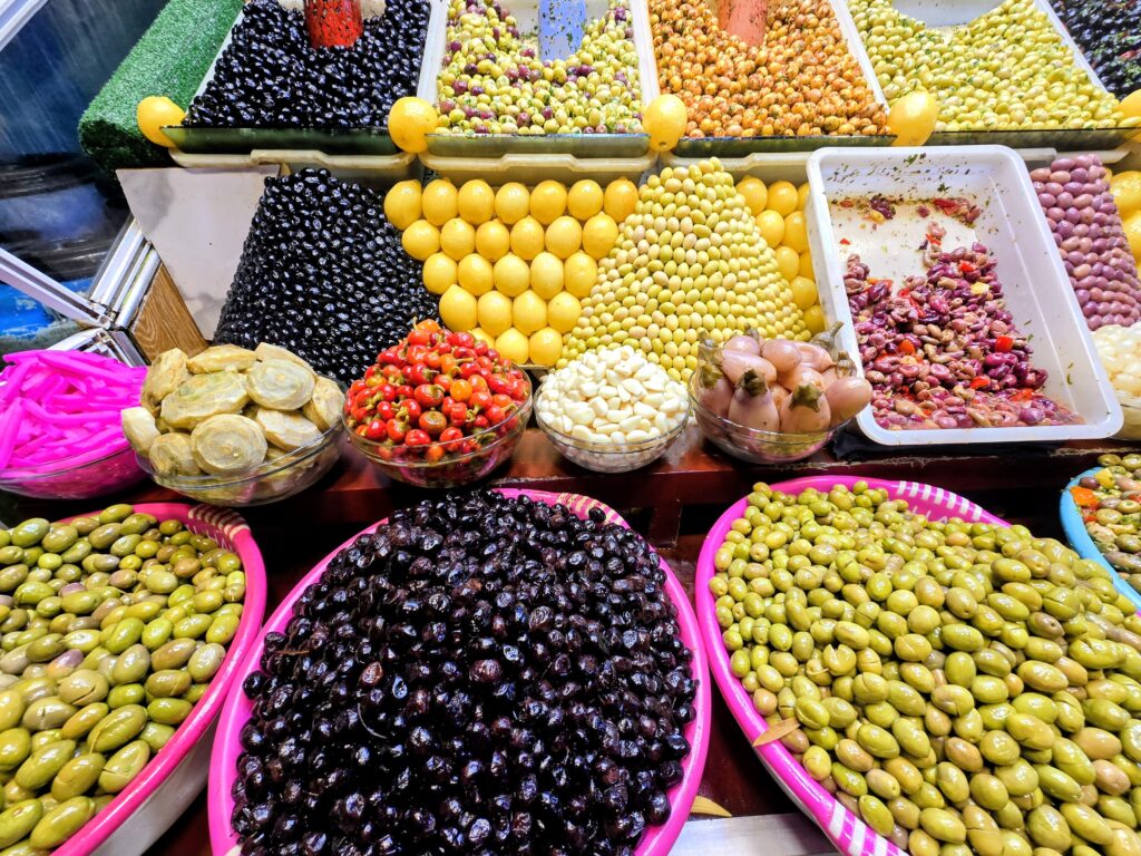 We also made our way to the main square and into the market that spills off it. Here, Meknes felt decidedly more alive than Fez had in the quiet of Ramadan. Stalls overflowed with glossy mountains of olives in every shade of green and purple, coils of fresh meat hung from hooks, and women bustled behind pastry counters, filling trays and boxes with delicate sweets in preparation for Eid al‑Fitr. You could almost feel the holiday anticipation in the air—this sense of everyone getting ready for something joyful just around the corner.