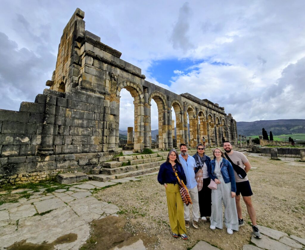 From Meknes, we drove on to Volubilis, where another private guide met us at the entrance to the Roman ruins. Even knowing it’s a UNESCO World Heritage site, nothing quite prepared us for the scale of it—an entire Roman city laid out across a hillside, with arches, columns, and fragments of villas tracing the outline of lives lived here almost two thousand years ago.