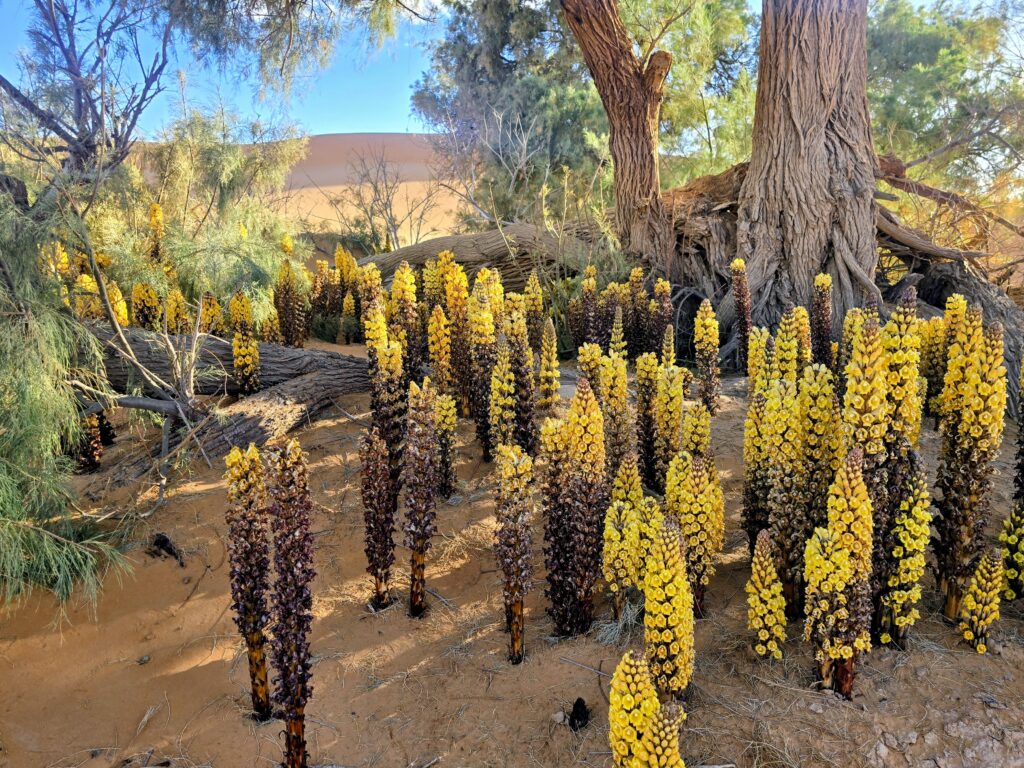 When we finally rolled back into camp, sun‑dusted and exhilarated, we were offered the chance to visit a nearby village. Tempting as it was, we chose the rare luxury of staying put. The rest of the day unfolded slowly: lounging with those almost unreal views as our backdrop, playing impromptu games of bocce in the sand, revisiting stories from our journey so far. Whenever the urge struck, we wandered out to nearby dunes at a more contemplative pace, noticing small patches of hardy desert flora clinging to the slopes—tiny bursts of green and texture in the vastness of sand.