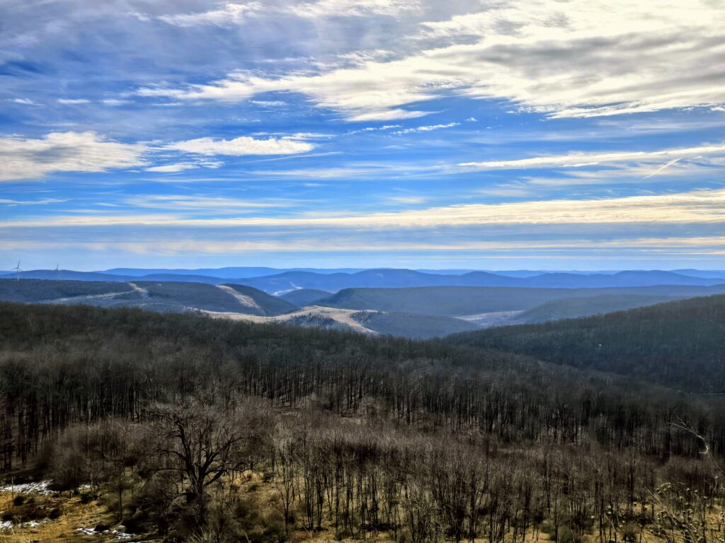 Our next stop brought us close to the job site, where we stumbled onto a stretch of the Tuscarora Trail—right at the spot where it quite literally splits West Virginia from Virginia. Running roughly parallel to, and just west of, the more famous Appalachian Trail, the Tuscarora feels like its quieter, wilder cousin. Time and weather were working against us that day, so we couldn’t do much more than step out, take in the ridge-top views, and follow the blazes for a short distance. But even that brief taste was enough to put this trail firmly on our “come back soon” list.