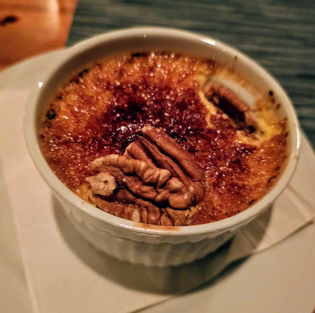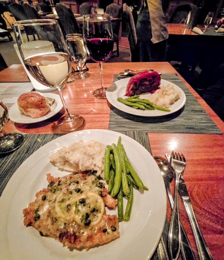 After exploring the Guesthouse and finishing a mean game of Scrabble, we settled into the bar with signature cocktails—the Lost River Kiss and another especially delicious house creation whose name I promptly forgot, but not its flavor. From there, we moved into the reservation-only Dining Room, where we were greeted by the soft soundtrack of their lovely auto piano. The menu leans indulgent in the best way: we started with the Whipped Ricotta, then split two entrées—the Chicken Piccata, that night’s special, and the Angus Meatloaf, a standout dish made with local Lost River beef and wrapped in smoked Amish bacon. The meatloaf is anything but ordinary, layered with caramelized sweet onions and bell peppers and smothered in an apple butter BBQ sauce, with both plates served alongside creamy mashed potatoes and sautéed green beans. We finished with a perfectly torched West Virginia Maple Crème Brûlée, a sweet, local twist on a classic that felt like the ideal ending to a cozy mountain dinner.